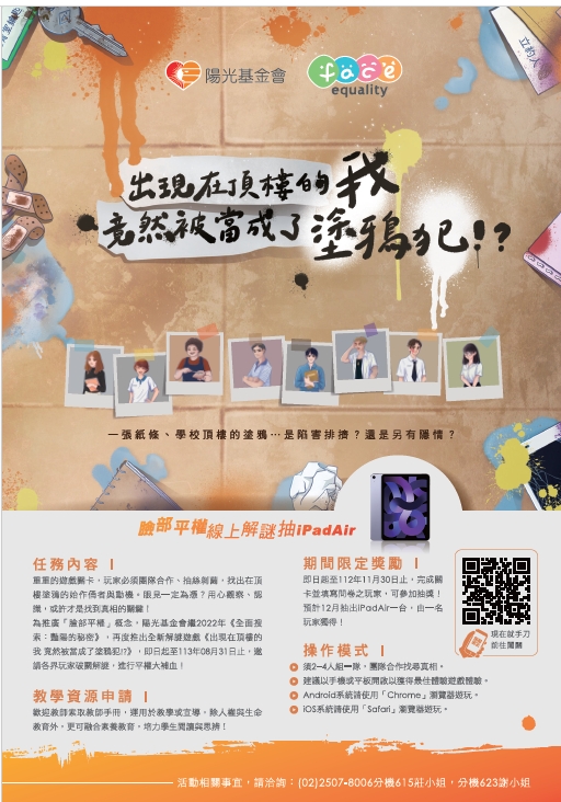 陽光基金會 112年臉部平權 線上解謎抽 iPad Air