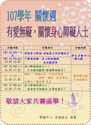 108學年關懷週,有愛無礙關懷身心障礙人士系列活動